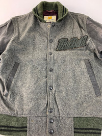 Macbeth - Rare 90s Macbeth MB Varsity Jacket Spell Out Leather Sleeve