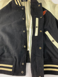 CONDITION: Worn (9/10) has stain, bobble MEASUREMENT: TAG SIZE: M (PLEASE SEE MEASUREMENTS) ARMPIT TO ARMPIT: 27 INCHES LENGTH: 24.5 INCHES SLEEVE LENGTH: 15.5 INCHES MATERIAL : Cotton/leather/wool NOTE : “Please see the pictures for details.” *Please provide TELEPHONE NUMBER after purchased, I need to fill the postage form for delivery process. Thank you. Code: P035