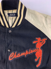 Streetwear - Bigi Ball Champion Big Logo Simple Leather Varsity Jacket
