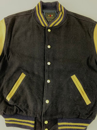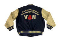 Van - Van Jac Inc Embroidery Logo Leather Sleeve Varsity Jacket