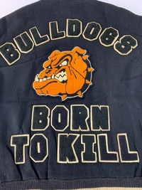 Vintage - Bulldog Born To Kill Big Logo Varsity Leather Jacket