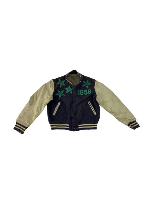 Golden Bear - 80s Rare Golden Bear 1958 Leather Sleeve Jacket Snap Button
