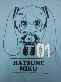 PLEASE READ TERMS & CONDITION BELOW BEFORE BUY Rare Anime Manga Hatsune Miku T-Shirt ITEM CONDITION : PRE-OWNED/AUTHENTIC/VINTAGE ============================================ CONDITION : PRE-OWNED WITH A GOOD CONDITON : NO ANY PIN HOLE,FADE COLOUR and STAIN MEASURES ABOUT (APPROXIMATELY) # ARMPIT TO ARMPIT : +- 20.5 INCH # LENGTH (BACK COLLAR DOWN) : +- 25 INCH # SIZE ON TAG : L # COLOUR : SKY BLUE # MADE IN : JAPAN # MATERIAL : 100% COTTON # CONDITION : GOOD (REFER PICTURE GIVEN) NOTE : (please see the pictures for details) ***SOLD ITEM ARE RETURNABLE OR REFUND ***PLEASE GIVE YOUR CONTACT NUMBER FOR SHIPPING DETAILS Ship to worldwide All items will be shipped out within 1-3 days after payment received. Usually, it takes about 18 - 24 business days for delivery for all International order. Sometimes, It may take up to 24 working days. However after 30 days your item still not arrive, please contact us immediately. For Holiday Period (eg: Christmas, Chinese New Year and etc), shipping will take longer time to reach. Please be patient when awaiting shipment. PAYMENT PayPal ONLY NO RETURN/REFUND All winning buyers are expected to pay within 3 days *Please give your e-mail and phone number after make a payment...Thanks ;) VISIT MY STORE FOR MORE ITEMS...THANKS