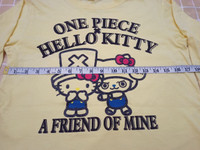PLEASE READ TERMS & CONDITION BELOW BEFORE BUY HELLO KITTY x ONE PIECE TONY CHOPPER LONG SLEEVE T ITEM CONDITION : PRE-OWNED/AUTHENTIC/VINTAGE ============================================= CONDITION : PRE-OWNED WITH A VERY GOOD CONDITON : NO ANY PIN HOLE, TEAR and STAIN MEASURES ABOUT (APPROXIMATELY) # ARMPIT TO ARMPIT : +- 17.5 INCH # LENGTH (BACK COLLAR DOWN) : +- 22.5 INCH # SIZE ON TAG : M # COLOUR : YELLOW # MATERIAL : 100% COTTON # CONDITION : VERY GOOD (REFER PICTURE GIVEN) NOTE : (please see the pictures for details) ***SOLD ITEM ARE RETURNABLE OR REFUND ***PLEASE GIVE YOUR CONTACT NUMBER FOR SHIPPING DETAILS Ship to worldwide All items will be shipped out within 1-3 days after payment received. Usually, it takes about 18 - 24 business days for delivery for all International order. Sometimes, It may take up to 24 working days. However after 30 days your item still not arrive, please contact us immediately. For Holiday Period (eg: Christmas, Chinese New Year and etc), shipping will take longer time to reach. Please be patient when awaiting shipment. PAYMENT PayPal ONLY NO RETURN OR REFUND All winning buyers are expected to pay within 3 days *Please give your e-mail anD Contact number(for delivery details) after make a payment...Thanks ;) VISIT MY STORE FOR MORE ITEMS...THANKS