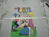 PLEASE READ TERMS & CONDITION BELOW BEFORE BUY Popeye The Sailorman 3 Quarter ITEM CONDITION : PRE-OWNED/AUTHENTIC/VINTAGE ============================================ CONDITION : PRE-OWNED WITH A VERY GOOD CONDITON : NO ANY PIN HOLE,STAIN and FADE COLOUR MEASURES ABOUT (APPROXIMATELY) # ARMPIT TO ARMPIT : +- 21.5 INCH # LENGTH (BACK COLLAR DOWN) : +- 28 INCH # SIZE ON TAG : XL # COLOUR : GREY # MATERIAL : 100% COTTON # CONDITION : GOOD (REFER PICTURE GIVEN) NOTE : (please see the pictures for details) ***SOLD ITEM ARE RETURNABLE OR REFUND ***PLEASE GIVE YOUR CONTACT NUMBER FOR SHIPPING DETAILS Ship to worldwide All items will be shipped out within 1-3 days after payment received. Usually, it takes about 18 - 24 business days for delivery for all International order. Sometimes, It may take up to 24 working days. However after 30 days your item still not arrive, please contact us immediately. For Holiday Period (eg: Christmas, Chinese New Year and etc), shipping will take longer time to reach. Please be patient when awaiting shipment. PAYMENT PayPal ONLY NO RETURN/REFUND All winning buyers are expected to pay within 3 days *Please give your e-mail and phone number after make a payment...Thanks ;) VISIT MY STORE FOR MORE ITEMS...THANKS