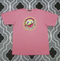PLEASE READ TERMS & CONDITION BELOW BEFORE BUY Vintage 24 Hour television Star Smily Lovely Reaction T Shirt ITEM CONDITION : PRE-OWNED/AUTHENTIC/VINTAGE ============================================= CONDITION : PRE-OWNED WITH A VERY GOOD CONDITON : NO ANY PIN HOLE : HAVE LITTLE BIT STAIN AND LIGHTLY FADED PART(REFER PICTURE GIVEN) *dIRECTLY BUY OR nEGOTABLE MEASURES ABOUT (APPROXIMATELY) # ARMPIT TO ARMPIT : +- 21 INCH # LENGTH (BACK COLLAR DOWN) : +- 27.5 INCH # SIZE ON TAG : LL # COLOUR : PINK # MADE IN : JAPAN # MATERIAL : 100% COTTON # CONDITION : GOOD (REFER PICTURE GIVEN) NOTE : (please see the pictures for details) ***SOLD ITEM ARE RETURNABLE OR REFUND ***PLEASE GIVE YOUR CONTACT NUMBER FOR SHIPPING DETAILS Ship to worldwide All items will be shipped out within 1-3 days after payment received. Usually, it takes about 18 - 24 business days for delivery for all International order. Sometimes, It may take up to 24 working days. However after 30 days your item still not arrive, please contact us immediately. For Holiday Period (eg: Christmas, Chinese New Year and etc), shipping will take longer time to reach. Please be patient when awaiting shipment. PAYMENT PayPal ONLY All winning buyers are expected to pay within 3 days *Please give your e-mail and phone number after make a payment...Thanks ;) VISIT MY STORE FOR MORE ITEMS...THANKS