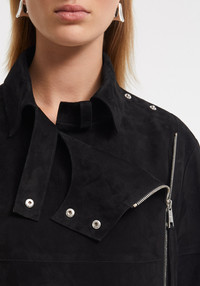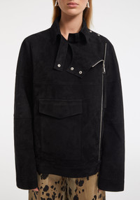Our CECILE suede jacket is made of responsibly sourced lamb leather. This piece features a directional, asymmetric zip front and a distinctive, sharp collar with snap buttons. With its clean silhouette and utilitarian flap pocket, it delivers a modern, structured look with soft tactility. Size and Fit Fits true to size, take your normal size. Fabric and Care 100% lambskin leather, Lining: 100% viscose Do not wash, Do not bleach, Do not tumble dry, Do not iron, Do not dry clean, Consult with leather specialist