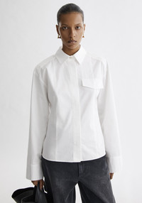 Our CHIA fitted shirt is a crisp, pure-cotton poplin piece that sharpens the everyday wardrobe with its clean, structured simplicity. Tailored with a refined, close-to-the-body silhouette, it features a pointed collar, concealed button placket, and a single angular chest pocket that adds a subtle, architectural note. Fabric and Care 100% cotton Hand wash at 30°C, Do not bleach, Do not tumble dry, Iron at medium temperature, Dry clean, Do not wring