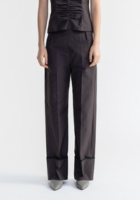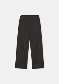 Our CHIP poplin pants are tailored of a crispy cotton blend. This piece has a wide leg silhouette, cuffed hems, sharp crease lines, and wide belt loops for an effortless look. Size and Fit Fits true to size, take your normal size. The model is 180 cm and wears a size 36. Fabric and Care 89% Cotton 11% Poliamide Do not wash, Do not bleach, Do not tumble dry, Iron low temperature, Suitable for dry cleaning, Suitable for professional wet cleaning