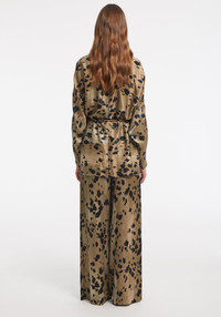 Our DEW turtleneck is made of a sustainable FSC-certified viscose and silk blend, adorned with our ocelot print. Designed with a high neckline and a relaxed silhouette, it features an adjustable drawstring at the waist for a personalized fit. This piece offers both fluidity and statement appeal, perfect for layered sophistication with the matching CRUST pants or worn on its own as a dress. Size and Fit Fits true to size, take your normal size. Fabric and Care 70% viscose, 30% silk Hand wash at 30°C, Do not bleach, Do not tumble dry, Iron at low temperature, Suitable for professional wet cleaning, Do not wring