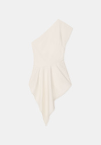Our DUNE asymmetrical one shoulder top is a study in modern elegance and sculptural ease. Cut to a clean, contoured silhouette, it features a singular shoulder line that flows into a beautifully draped peplum, creating soft architectural volume around the hips. The asymmetric hem adds movement and dimension that balances structure with fluidity. Fabric and Care 73% polyester, 19% viscose, 8% elastane Hand wash cold or at 30°C, Do not bleach, Do not tumble dry, Iron at low temperature, Dry clean