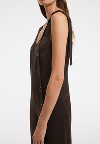 Our PRIMA slip dress is part of our Summer Occassions upcycled collection, made of deadstock fabrications from our archive and produced in our home, Hungary. This piece has a classic, bias cut that falls effortlessly on the body, while featuring adjustable straps, a slit and a hidden zip at the side. Size and Fit Fits true to size, take your normal size. Fabric and Care 73% Viscose 23% Linen Do not wash, Do not bleach, Do not tumble dry, Iron low temperature, Suitable for dry cleaning, Suitable for professional wet cleaning