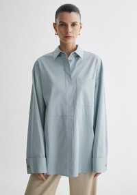 Our FRANCIS shirt is a crisp, pure-cotton poplin piece cut in an intentionally oversized silhouette for an effortless, elongated line. Defined by its clean construction, dropped shoulders, and a single chest pocket, it balances structure with ease. The exaggerated cuffs, finished with our signature A-motif hardware, add a refined point of focus, while the soft, cool-toned poplin brings a modern purity to the piece. Fabric and Care 100% cotton Hand wash at 30°C, Do not bleach, Do not tumble dry, Iron at medium temperature, Dry clean, Do not wring