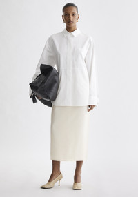 Our FRANCIS shirt is a crisp, pure-cotton poplin shirt cut in an intentionally oversized silhouette for an effortless, elongated line. Defined by its clean construction, dropped shoulders, and a single chest pocket, it balances structure with ease. The exaggerated cuffs, finished with our signature A-motif hardware, add a refined point of focus, while the soft, cool-toned poplin brings a modern purity to the piece. Fabric and Care 100% cotton Hand wash at 30°C, Do not bleach, Do not tumble dry, Iron at medium temperature, Dry clean, Do not wring