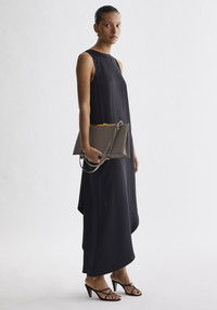 Our GLAZE asymmetric satin maxi dress embodies fluid elegance with a modern, architectural edge. Cut in a clean, elongated silhouette, it falls effortlessly from the shoulder into a sweeping asymmetric hem that moves softly. The low, sculpted back adds depth and sensuality, while the satin’s subtle sheen enhances its refined simplicity. Fabric and Care 66% acetate, 34% viscose Hand wash cold or at 30°C, Do not bleach, Do not tumble dry, Iron at low temperature, Dry clean, Wash separately