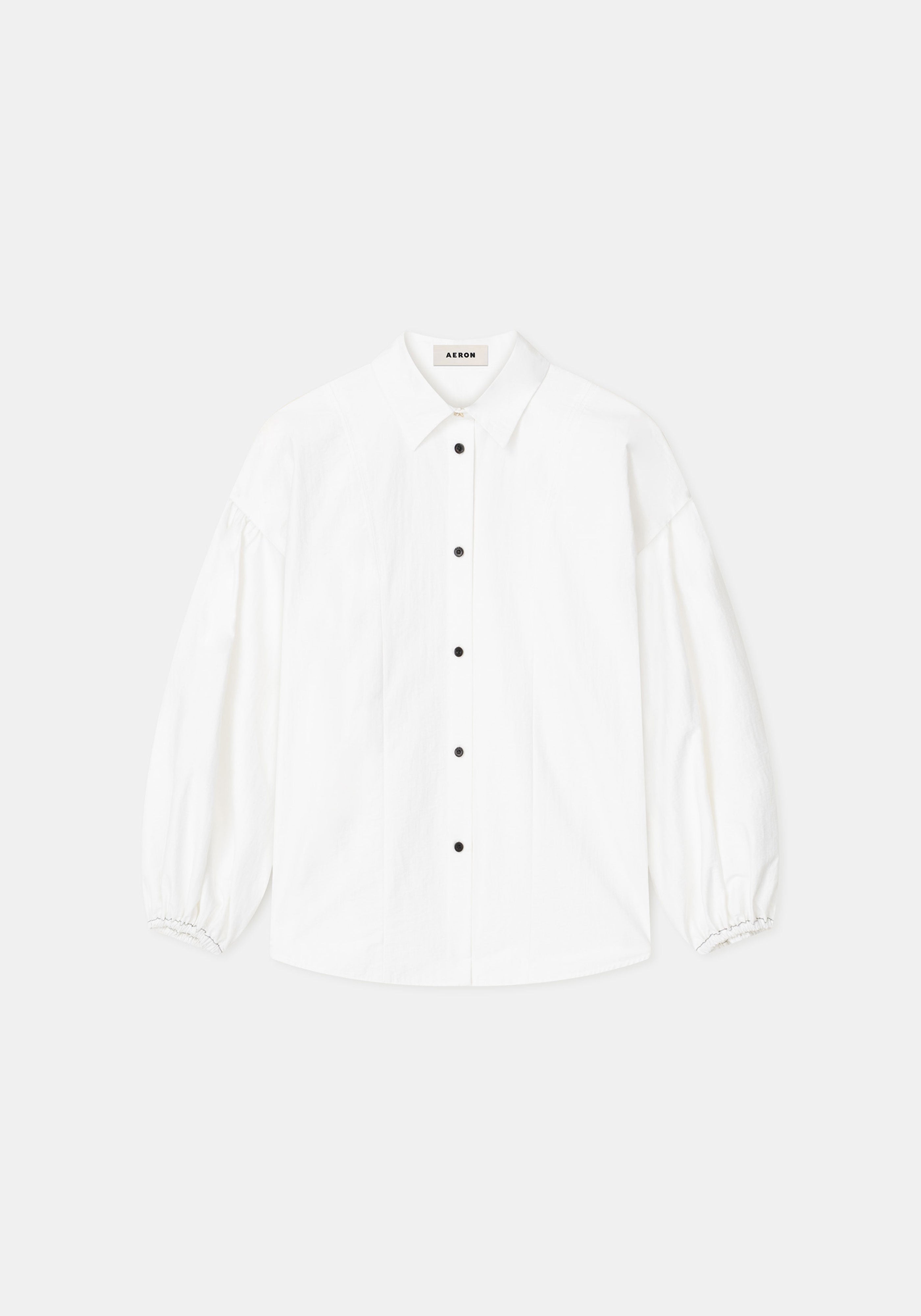 Our HALEY poplin shirt is made of a crispy cotton blend. This piece has voluminous balloon sleeves and an oversized silhouette. Size and Fit Designed for a loose fit, in case you do not prefer an oversized look take one size smaller than usual. The model is 180 cm and wears a size 36. Fabric and Care 89% Cotton 11% Polyamide Do not wash, Do not bleach, Do not tumble dry, Iron low temperature, Suitable for dry cleaning, Suitable for professional wet cleaning