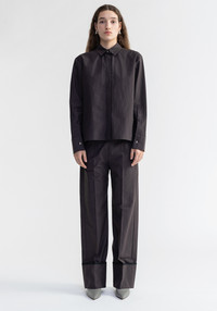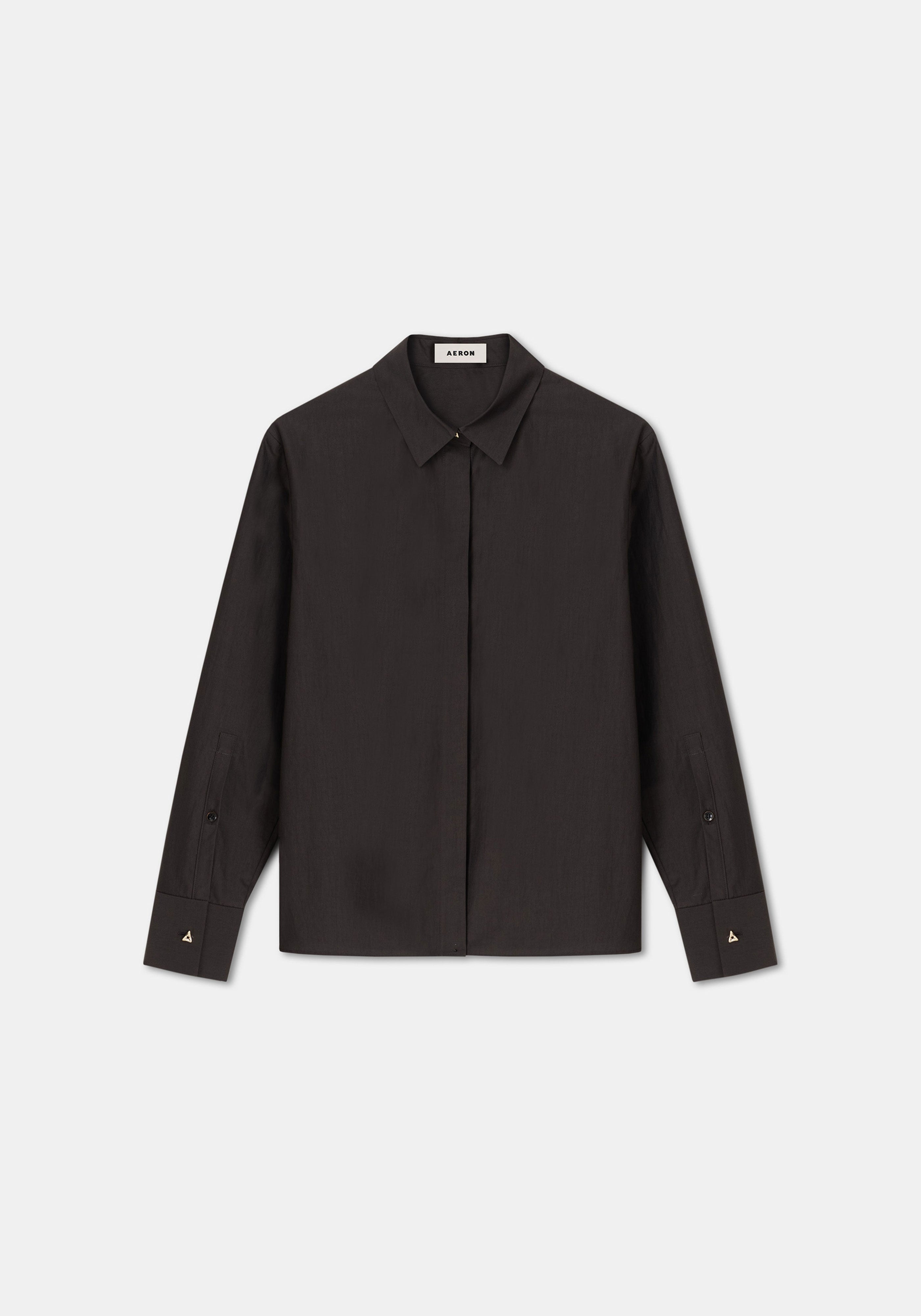 Our HANS poplin shirt is tailored of a crispy cotton blend. This piece has a regular fit and a hidden placket, decorated with small A-buttons on the cuffs and the neck. Size and Fit Fits true to size, take your normal size. The model is 180 cm and wears a size 36. Fabric and Care 89% Cotton 11% Poliamide Do not wash, Do not bleach, Do not tumble dry, Iron low temperature, Suitable for dry cleaning, Suitable for professional wet cleaning