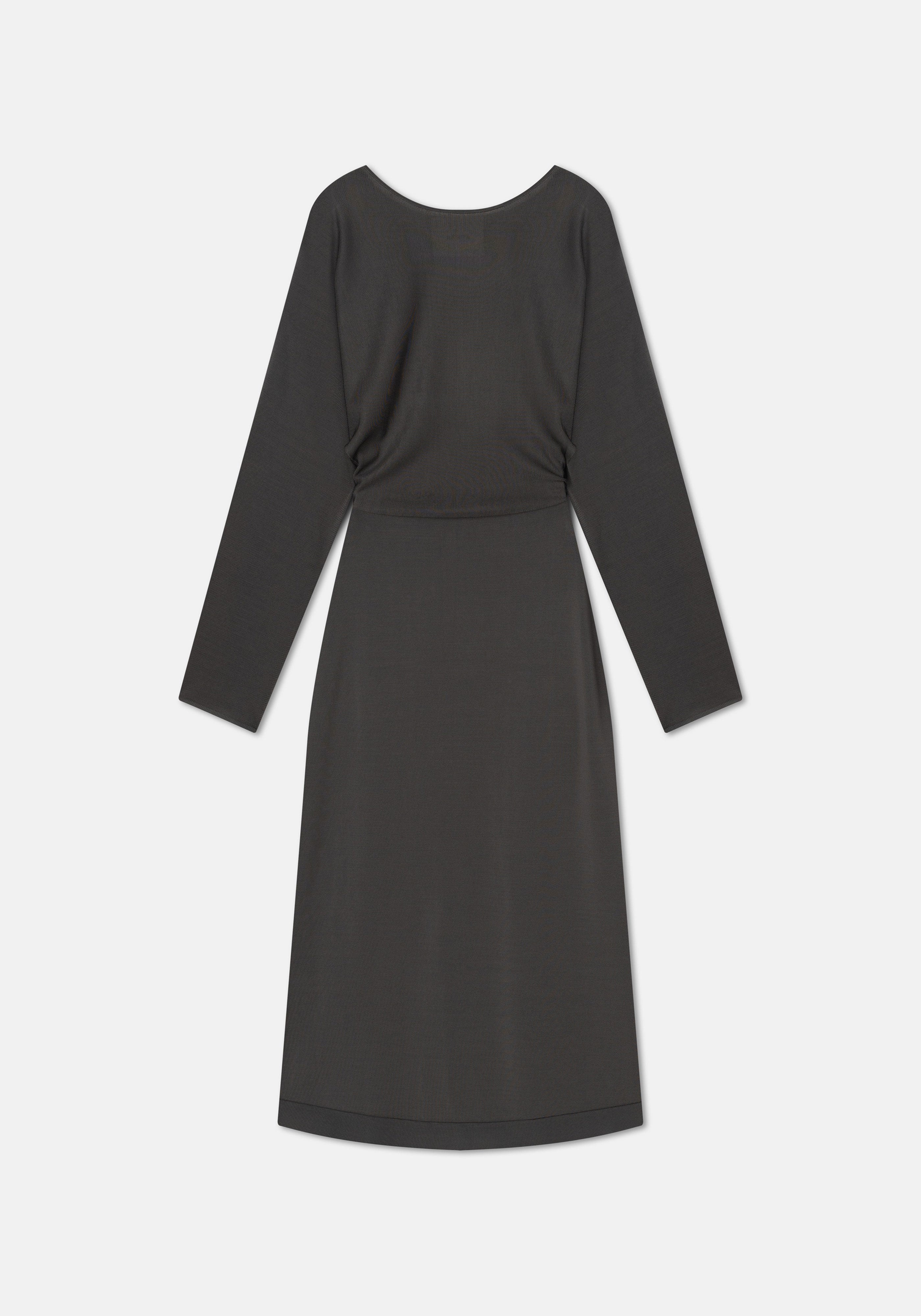 Our LOUISE midi dress is knitted of a slinky yarn with a rich, silky feel. This elegant piece has a slightly waisted silhouette that creates gentle drapes at the top. Size and Fit Fits true to size, take your normal size. The model is 180 cm and wears a size S. Fabric and Care 100% Rayon Hand wash at 30°C, Do not bleach, Do not tumble dry, Iron low temperature, Do not wring, Dry flat, Suitable for dry cleaning, Suitable for professional wet cleaning