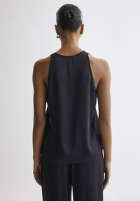 Our REA V-neck satin top offers a refined, minimal silhouette with a fluid, understated drape. The deep V neckline creates a clean, elongated line, while the racer-inspired back adds subtle structure to the otherwise relaxed form. Designed to sit effortlessly against the body, it pairs seamlessly with both tailoring and evening pieces. Fabric and Care 66% acetate, 34% viscose Hand wash cold or at 30°C, Do not bleach, Do not tumble dry, Iron at low temperature, Dry clean, Wash separately