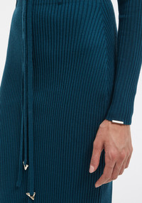 Merino ribbed midi skirt with belt