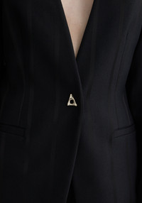Our SOMERSET collarless waisted blazer is defined by a clean, elongated line that sharpens its modern, minimalist silhouette. Subtle tonal stripes run through the fabric, adding quiet dimension while maintaining its refined simplicity. Gentle waist shaping brings structure to the body, and the collarless design keeps the look crisp and architectural. Finished with our signature A-button, it’s a polished, versatile piece that transitions effortlessly between settings. Fabric and Care 64% polyester, 35% viscose, 1% elastane; Lining: 100% viscose Do not wash, Do not bleach, Do not tumble dry, Iron at low temperature, Dry clean