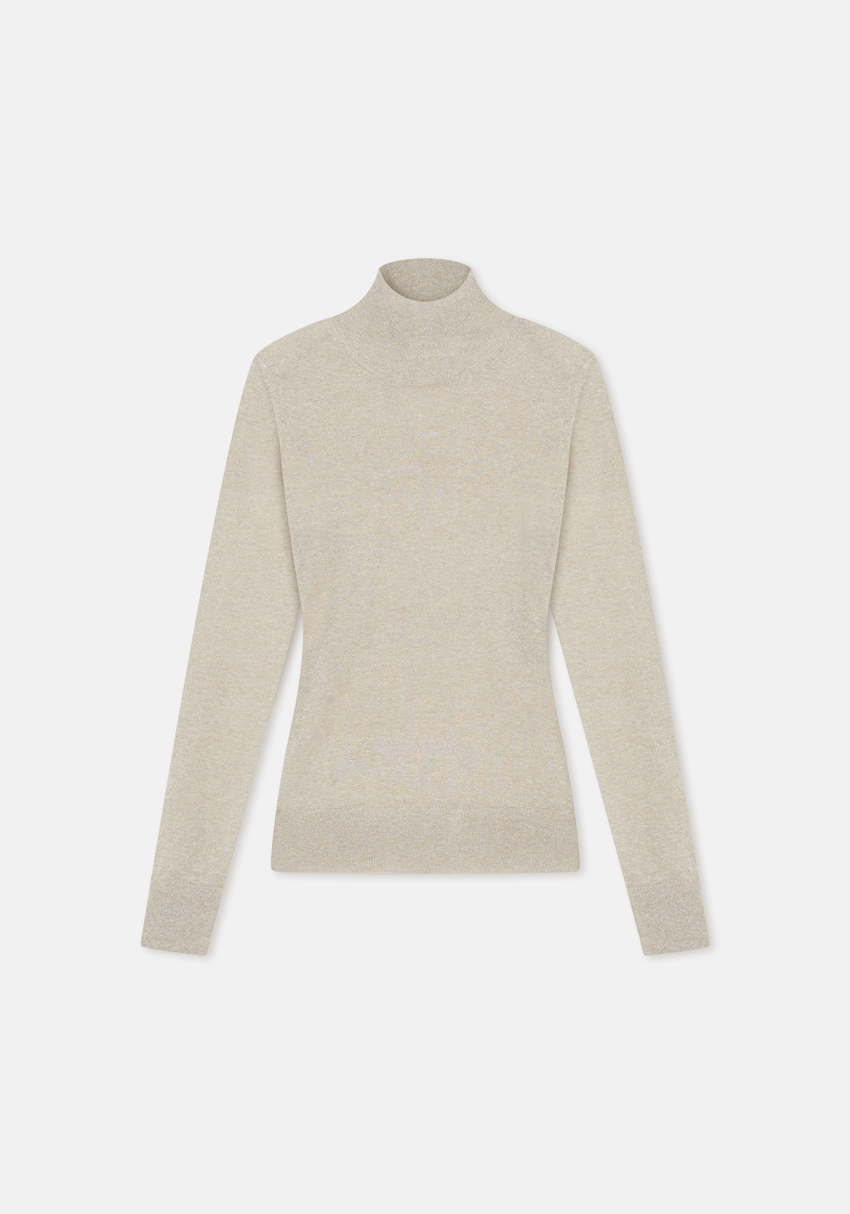 Our VASLAV turtleneck is made with a slinky, metallized yarn that has a shiny look. This piece has a semi-sheer and a fitted silhouette, perfect for the party season. Size and Fit Fits true to size, take your normal size. The model is 180 cm and wears a size S. Fabric and Care 70% Viscose 15% Polyester 15% Metallized fiber Do not wash , Do not bleach, Do not tumble dry, Do not iron, Dry flat, Suitable for dry cleaning