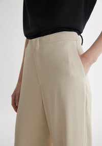 Our VINCENT satin pants offer a refined take on relaxed tailoring. Cut to a fluid, elongated silhouette, they drape cleanly from the waist into a wide leg that moves with quiet ease. The minimal waistband and discreet detailing keep the lines uninterrupted, allowing the satin’s soft sheen to elevate the simplicity of the form. Fabric and Care 66% acetate, 34% viscose Hand wash cold or at 30°C, Do not bleach, Do not tumble dry, Iron at low temperature, Dry clean, Wash separately