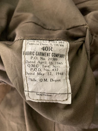 D047 Vtg WW2 Jacket Field Wool OD Military Phila QM Depot 🔥Bundles/combo are most welcome🔥 ‼️KINDLY READ & UNDERSTAND CAREFULLY DESCRIPTIONS BELOW‼️ DESCRIPTION Manual measurement size - approximately All measurements are in Inch Chest : 21 in Length : 24 in Shoulder : 18.5 in Sleeve : 25 in Size on tag : 40R Has a bit sponge/pad on shoulder DEFECT : (Please refer pictures for details conditions/any item imperfections).Might have a sign of wear CONDITION: Used item,please do not expect it to be like new garment or in pristine condition. Shipping 👉🏿The item buy will be shipped by DHL Express,it may take 4 - 9 working days to reach ***FOR DELIVERY USE,PLEASE LEAVE YOUR PHONE NO.,EMAIL AND DETAILS AFTER PURCHASED THE ITEM. Any questions & more details please message me. ‼️Please take note I am not responsible if your country imposes tax on item purchased especially EU country.This is beyond my control. Each tax price charged depends on the country of the buyer. ‼️No return,exchange or refunds. All sales are final.Once the item has shipped it is no longer my responsibility. Accept payment : PayPal ONLY THANK YOU