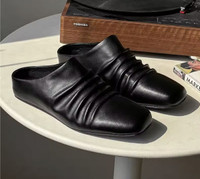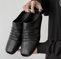 Japanese Brand - Black Genuine Leather Slouch Mules