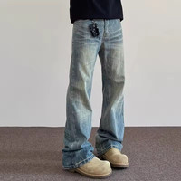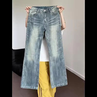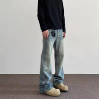 Japanese Brand - Vintage Style washed and aged casual micro flare jeans