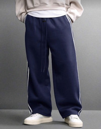 Wide-Leg Stripe Sweatpants - Heavy Fleece A premium pair of Custom Wide-Leg Sweatpants featuring a high-contrast triple-stripe side detail. Designed with the exaggerated, slouchy proportions popularized by modern luxury streetwear houses. These are not a mass-market blank; they feature a custom-tapered wide silhouette and heavy-duty hardware. The fit is specifically engineered to stack over high-top sneakers or drape over chunky loafers, utilizing a heavyweight cotton fleece that holds its shape while maintaining a soft, luxury hand-feel. Key Details • Silhouette: Ultra-wide leg with a slight stack at the ankle. • Fabric: Premium heavyweight Cotton-blend • Waistband: Thick elastic with extra-long tonal drawstrings. • Side Detail: Custom-sewn cream stripe panels • Pockets: Deep side pockets with reinforced stitching. Measurements (Flat Lay) • Waist 70-90 cm • Length 102 cm • Hip 104 cm Seller Notes • SEO Fit: Similar silhouette to Fear of God Athletics, Balenciaga, and Rick Owens. • Shipping: Standard tracked shipping within 2 days. #custom #streetwear #wideleg #archive #balenciaga #fearofgod #minimalist #trackpants #heavysweats #1of1 #boxyfit #baggy #modernluxury