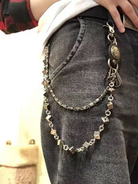 Aesthetic: Cyber-Goth / Hard-Jewelry / Chrome-Core / Drainer • Material: High-Shine Polished Chrome / Heavyweight Alloy • Hardware: Dual Lobster Clasp Attachments / Triple-Link Strands • Design: Gothic Crosses / Anatomical & Tribal Heart Charms / Industrial Safety Pin Accent • Vibe: Punk-Revival / Avant-Garde Accessory [DESCRIPTION] A maximalist statement piece designed for 2025’s industrial streetwear shift. This multi-layered pant chain features three distinct tiers of high-polish chrome links, providing a heavy, tiered drape across the hip. The accessory is detailed with iconic Gothic Cross pendants and tribal-engraved heart charms, anchored by a large industrial safety pin and heavy-duty lobster clasps for secure attachment to belt loops. Its high-shine finish makes it a standout "visual anchor" for dark-wear or baggy denim outfits. Key Details: • Layering: Triple-tier chain setup for maximum movement and "clink". • Charms: Features a mix of chrome crosses and heart motifs. • Versatility: Can be worn on trousers, skirts, or as a deconstructed necklace. • Condition: Brand New. #chrome #pantchain #cybercore #goth #industrial #streetwear #hardjewelry #walletchain #cross #y2k #punk #accessories #drainer #grailed #silverjewelry