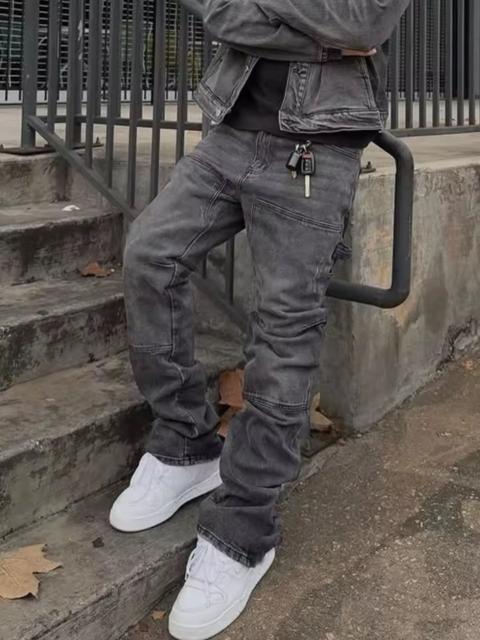 Japanese Brand - Faded Black Stacked Carpenter Denim - Flare / Zip Hem