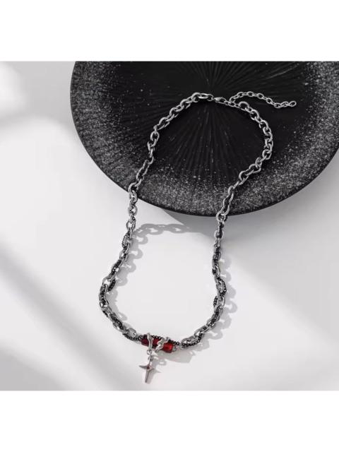 Japanese Brand - Gothic Gemstone Cross Necklace - Grunge Cybercore Chain