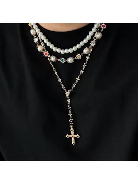 Jewelry - CROSS Pendant Necklace Gothic Pearl style chain Y2k