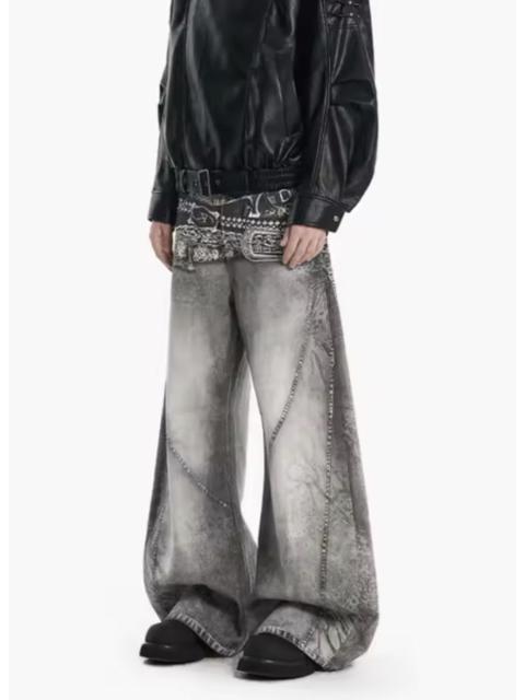 Japanese Brand - Mud Wash Wide Leg Denim - Y2K Double Belt Graphic