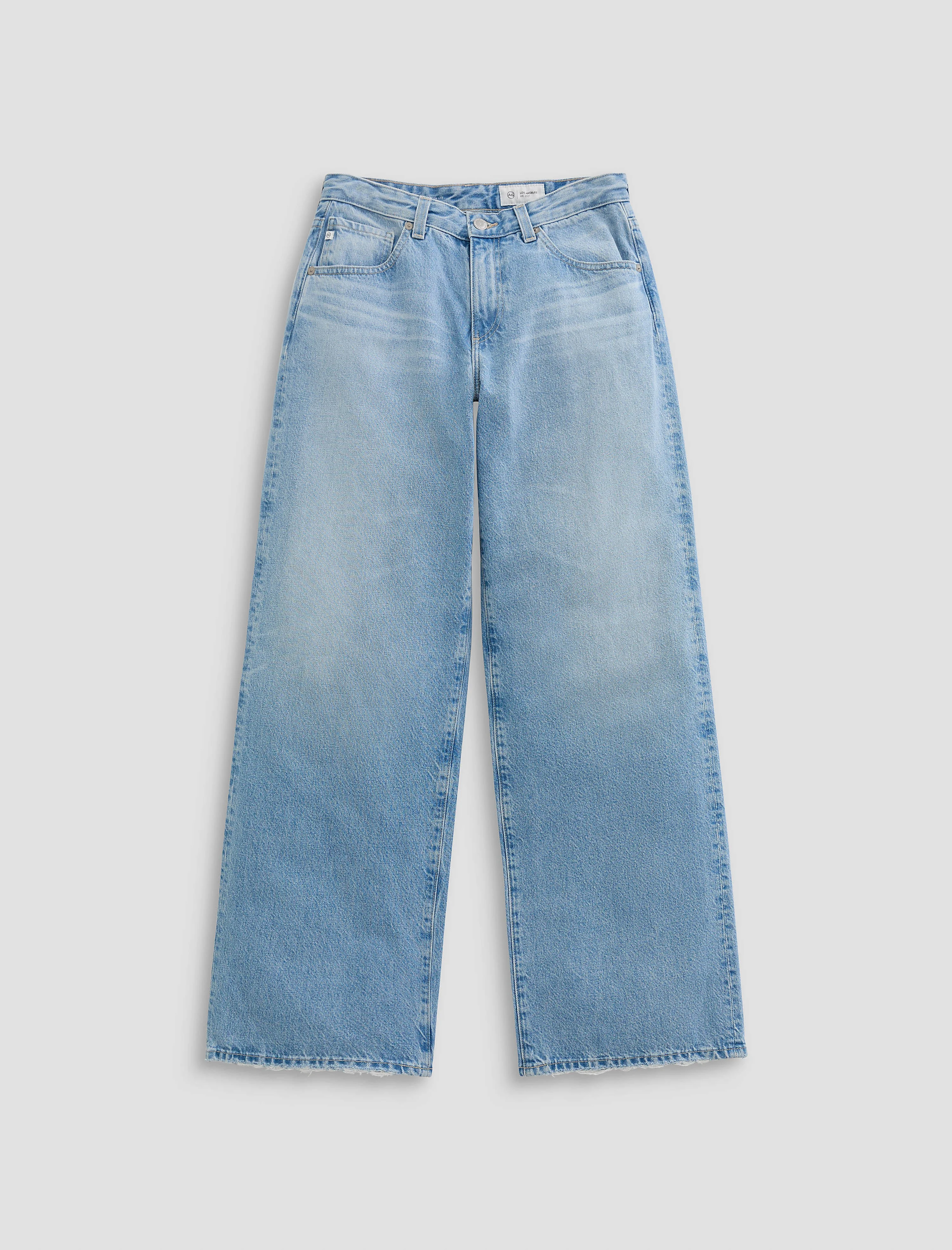 Low-Rise Wide Leg Adria is crafted in Sioux Rigid Denim for structure that lasts all day. This jean is adored for its low-rise waist that hangs on the hip and a loose wide leg that puddles at the hem. Designed in our light blue wash, Mondrian, and finished with whiskering, fading, and distressed hem. DETAILS & FIT Model is wearing a size 26. - Front Rise: 9 1/2" - Knee Opening: 22" - Bottom Opening: 21" - Inseam: 32" FABRIC & CARE Sioux Rigid Denim, 13 oz. 100% Cotton