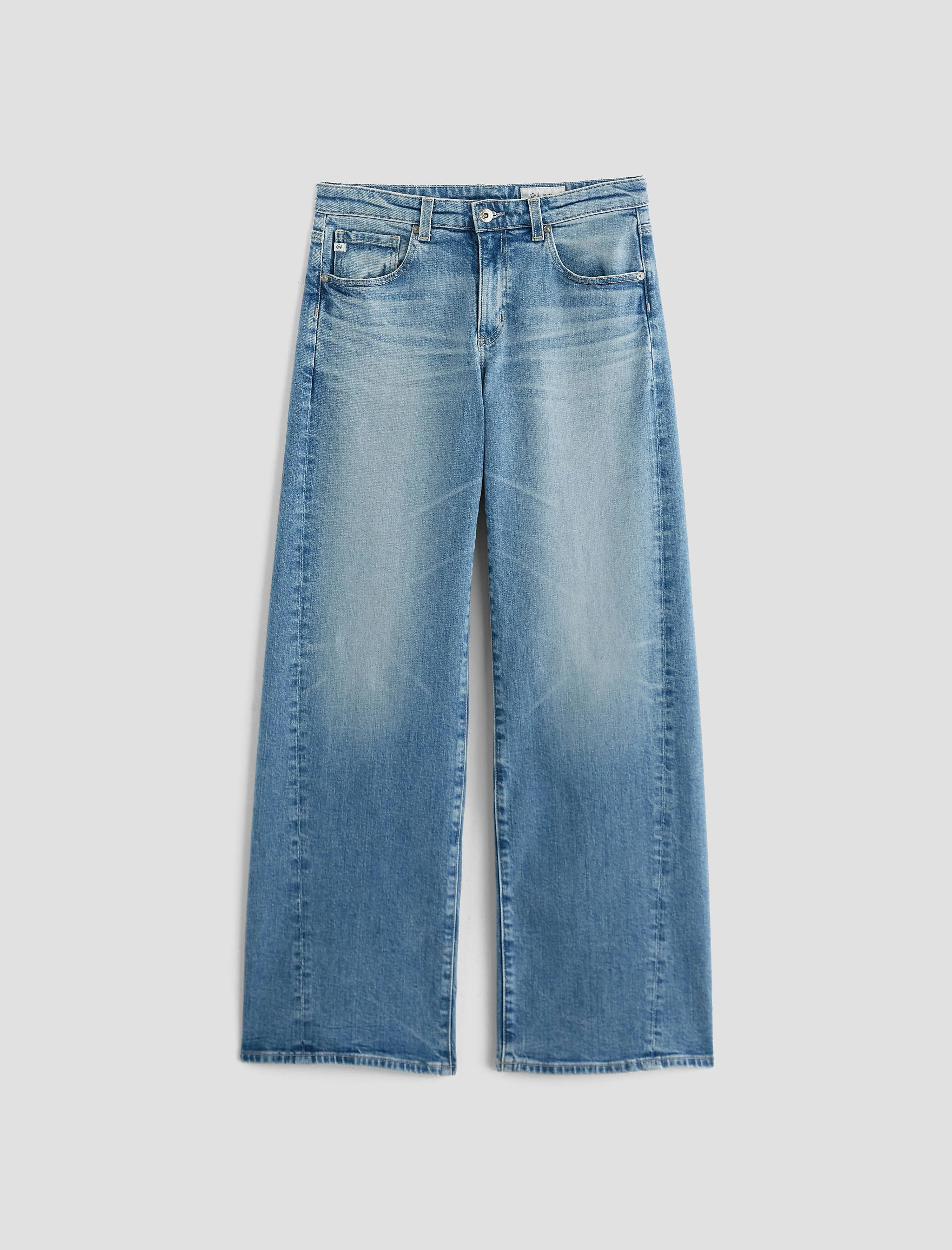 Low-Rise Wide Leg The Adria twisted leg jean delivers a laid-back silhouette with a modern edge. Cut from soft, flexible Italian denim, it offers comfort without compromising structure. The side seams twist towards the front for a new take on this cool girl style. Designed to sit low on the hips and fall into a wide-leg shape, this jean finishes with a subtle puddle at the hem for an effortlessly relaxed look. DETAILS & FIT Model is wearing a size 26. - Front Rise: 9 1/2" - Knee Opening: 22" - Bottom Opening: 21" - Inseam: 32" FABRIC & CARE Vintage Comfort Stretch Denim, 11.75 oz. 98% Cotton, 2% Elastane