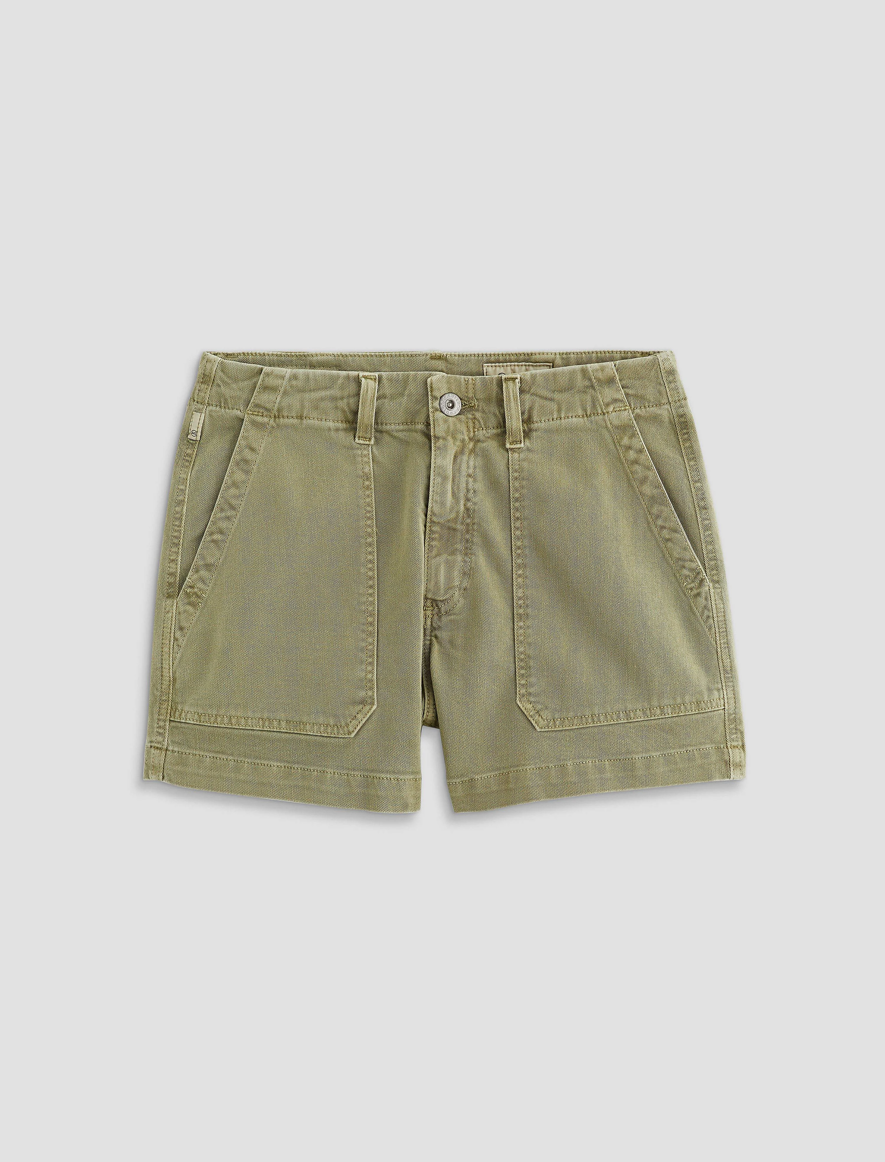 Mid-Rise Utility Crafted from AG Cloud Soft Denim™ comfort stretch denim, the Analeigh Short, in Sulfur Basil, delivers a mid-rise fit with built-in flexibility for ease of movement. This style features utility-inspired detailing, including workwear-style pockets for a functional look. DETAILS & FIT Model is wearing size 26. - Front Rise: 10 1/2" - Bottom Opening: 24" - Inseam: 3 1/2" FABRIC & CARE AG Cloud Soft Denim™, Hyper Soft Bull Denim, 8.7 Oz. 93% Cotton, 6% Polyester, 1% Elastane