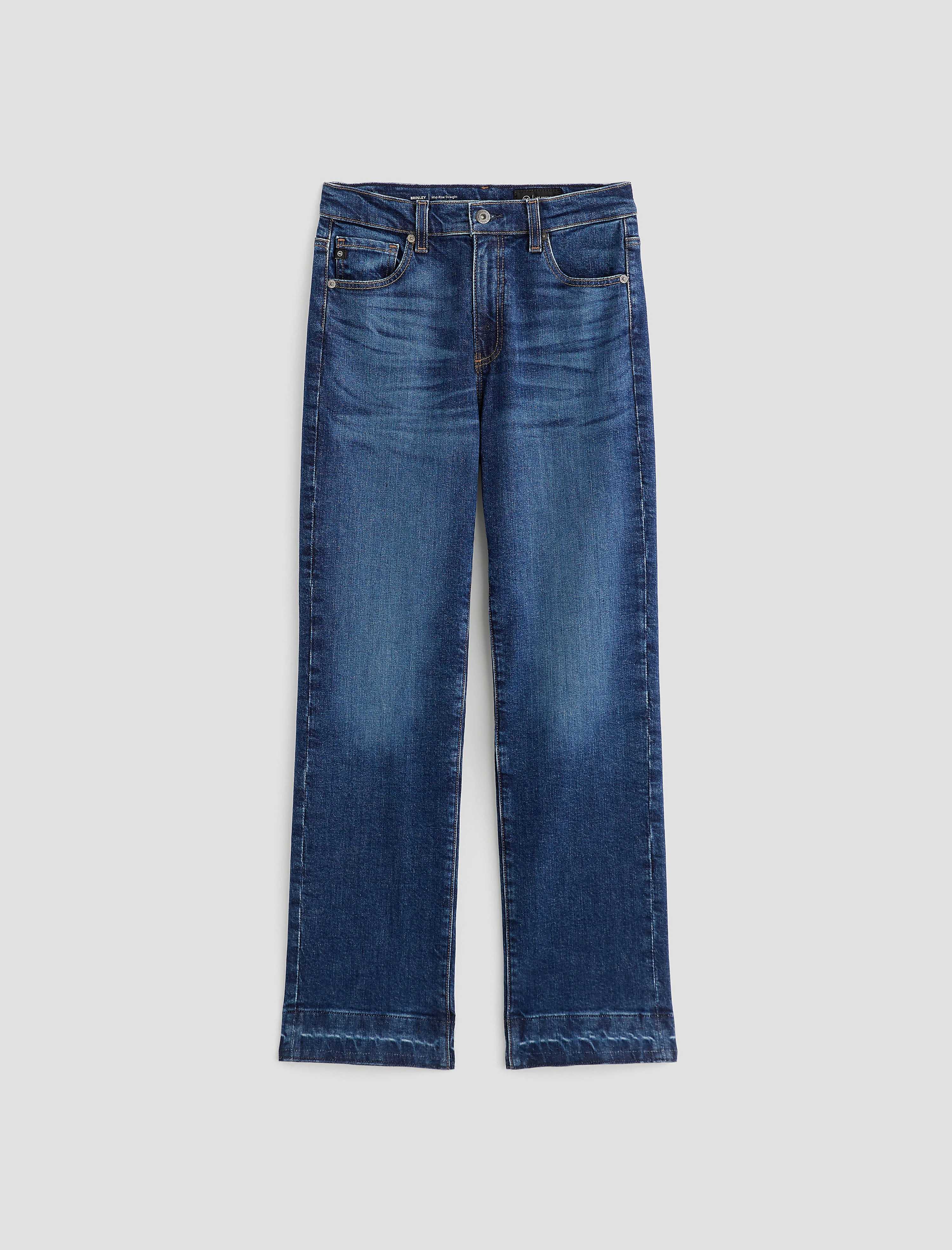Mid-Rise Straight The Brinley is a mid-rise straight-leg jean with a 29.5” inseam, crafted from 11.75 oz. Vintage Comfort Stretch Denim in a dark wash. It offers a classic fit with just the right amount of structure and flexibility. Designed with classic five-pocket styling and premium construction for everyday wear. DETAILS & FIT Model is wearing a size 26. - Front Rise: 10 1/4" - Knee Opening: 17 1/4" - Bottom Opening: 16" - Inseam: 29 1/2" FABRIC & CARE Vintage Comfort Stretch Denim, 11.75 oz. 98% Cotton, 2% Elastane
