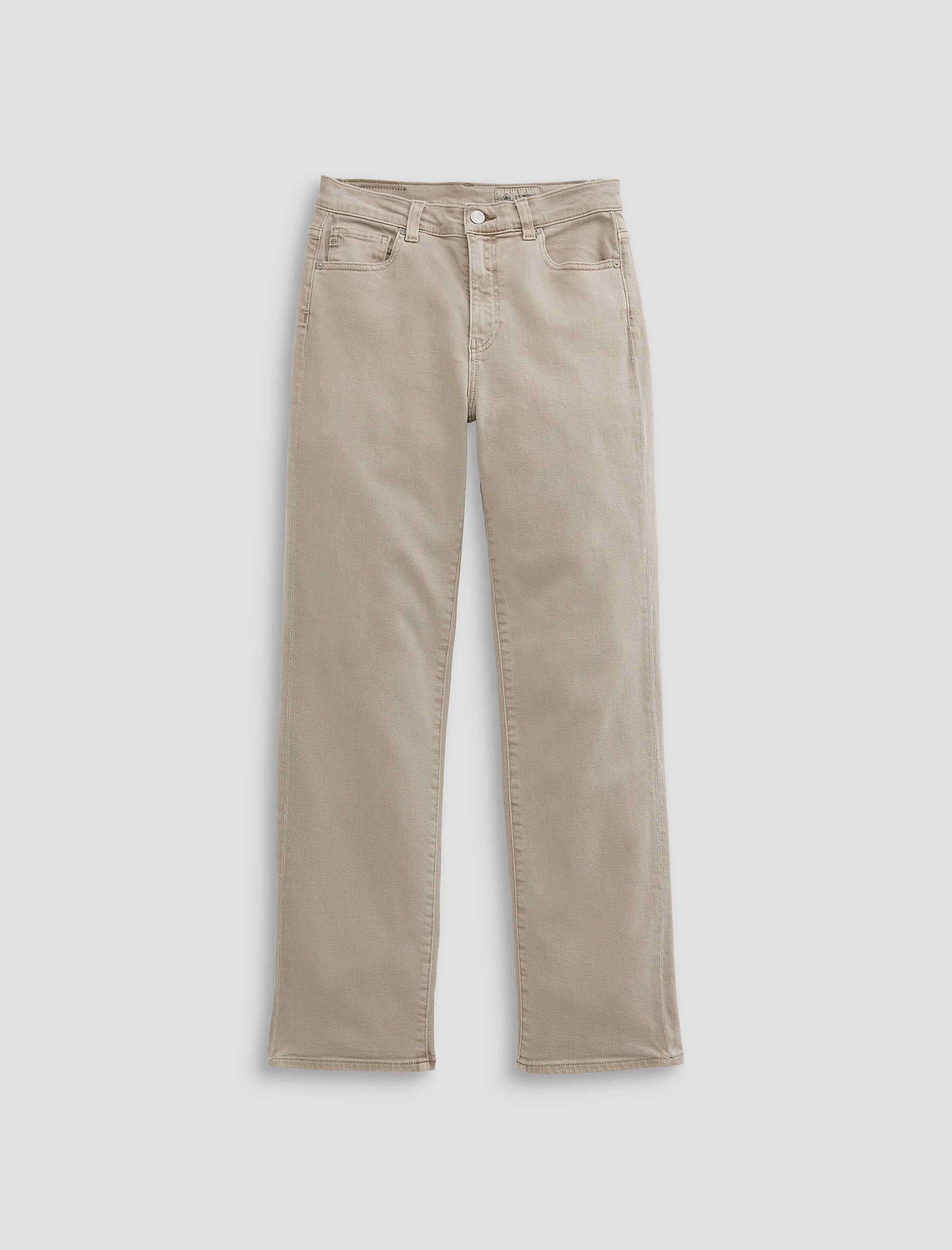 Mid-Rise Straight Brinley is a classic straight silhouette crafted in Daytripper Stretch Raw Denim from the renowned Kaihara Mill in Japan. A versatile, polished jean with a mid-rise waist and flexible fit for everyday wear. Meticulously sulfur-dyed to a soft khaki brown color, Light Taupe, and complemented by tonal stitching. DETAILS & FIT Model is wearing a size 26. - Front Rise: 10 1/4" - Knee Opening: 17 1/4" - Bottom Opening: 16" - Inseam: 29 1/2" FABRIC & CARE Daytripper Stretch Raw Denim, 10 Oz. 72% Cotton, 26% Lyocell, 2% Elastane