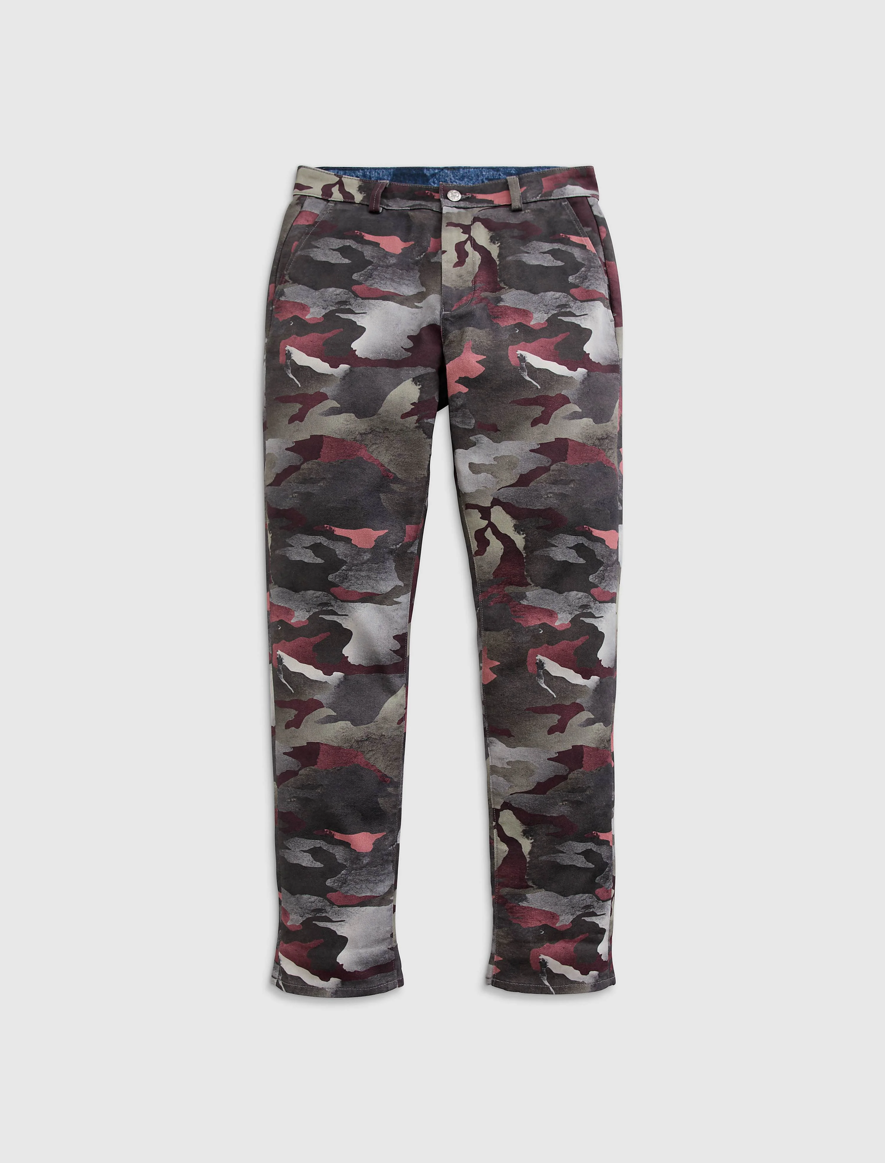 Mid-Rise Relaxed Caden is our tailored trouser for women featuring a grey and pink camo in our Superior Stretch Twill fabrication. These trousers offer a relaxed fit through the hip, slight tapering at the thigh, and a cropped ankle. Designed in a luxurious, lightweight fabric with comfortable, super stretch wear. DETAILS & FIT Model is wearing size 26. - Front Rise: 9 1/2" - Knee Opening: 15" - Bottom Opening: 12" - Inseam: 27" FABRIC & CARE Superior Stretch Twill, 10 Oz. 50% Cotton, 41% Lyocell, 7% Polyster, 2% Polyurethane
