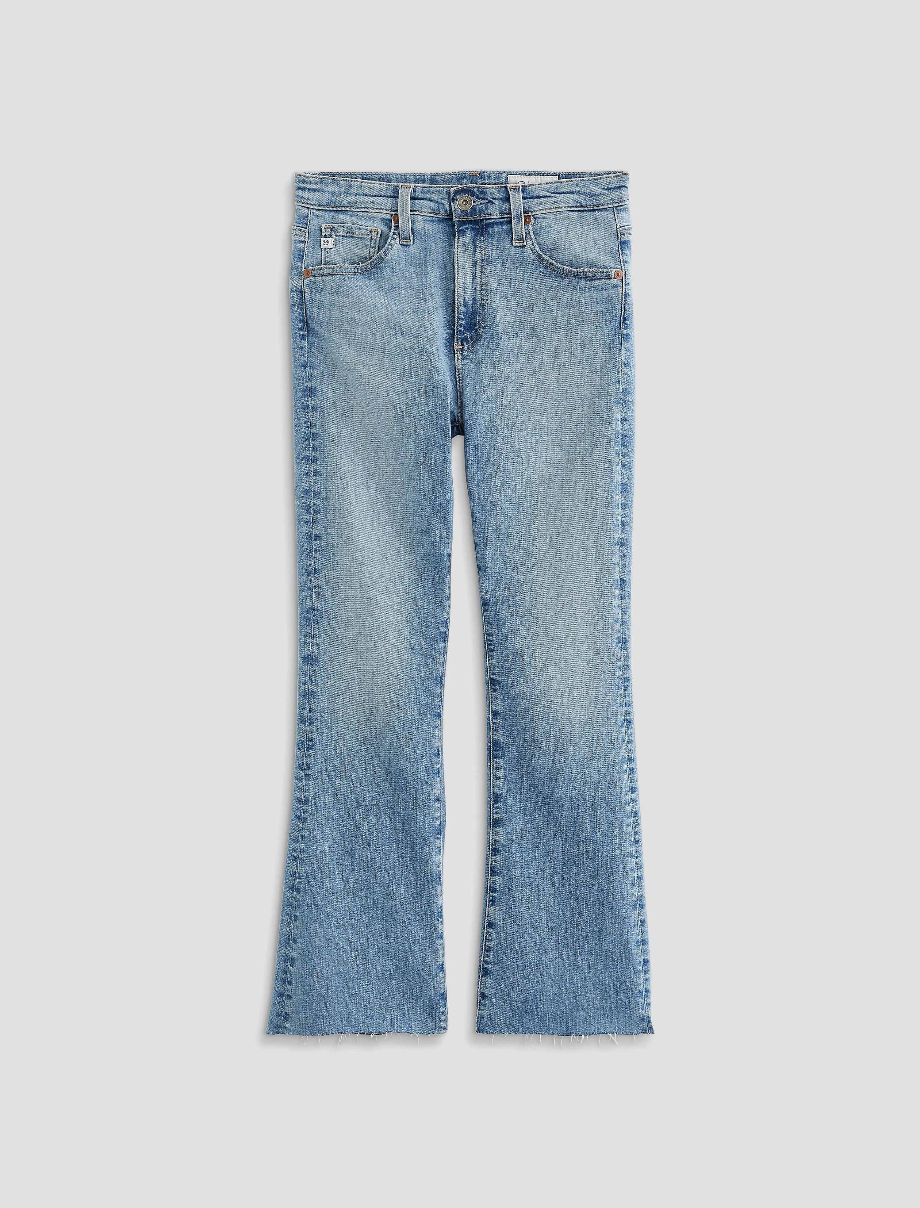 Mid-Rise Boot The Farrah Boot Crop in Marina Blue is a mid-rise jean made from 11.25 oz Quartzblue Stretch Denim for a comfortable, flexible fit. This light wash style is slim through the leg and finishes with a subtle bootcut flare and raw hem for a modern touch. DETAILS & FIT Katy is 5'9 wearing size 26. Linh is 5'3 wearing size 24. The measurements below are based on a size 26. - Front Rise: 10" - Knee Opening: 14" - Bottom Opening: 18 1/2" - Inseam: 27" FABRIC & CARE Quartzblue Stretch Denim, 11.25 Oz. 91% Cotton, 6% Polyester, 3% Elastane