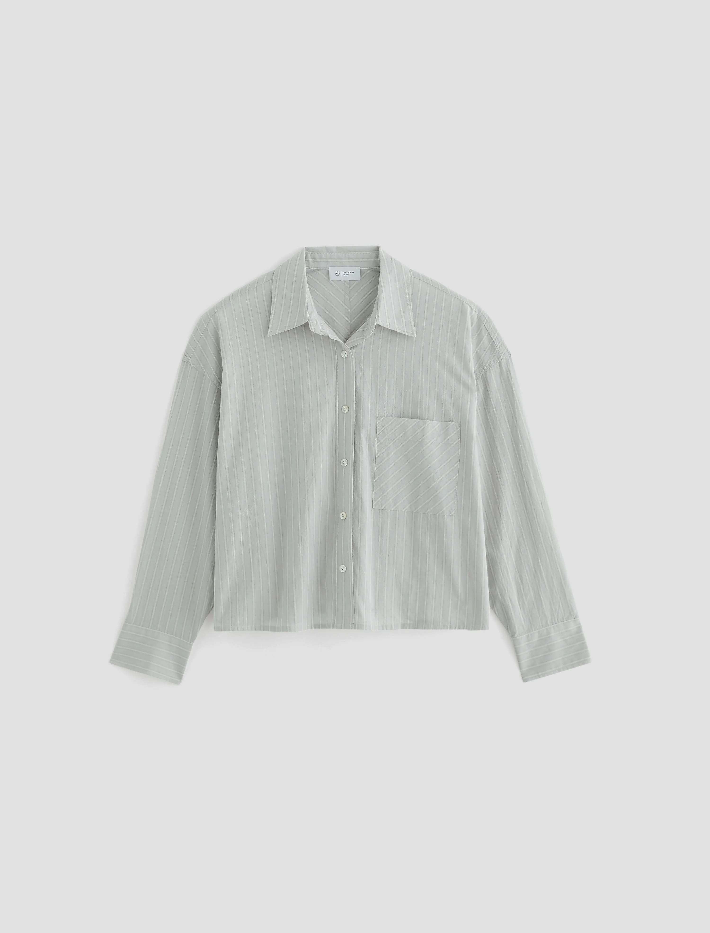 Light-Weight Boxy Crop Easygoing and comfortable, the Kellan is a cropped, long-sleeve shirt crafted from lightweight poplin for a crisp, breathable feel. The relaxed fit gives it an effortless drape, while the structured fabric keeps the silhouette looking clean and intentional. DETAILS & FIT Model is wearing size S. - Body Length: 23" - Chest Width: 25" - Sleeve Length: 20" FABRIC & CARE Crinkle Cotton Poplin, 100% Cotton