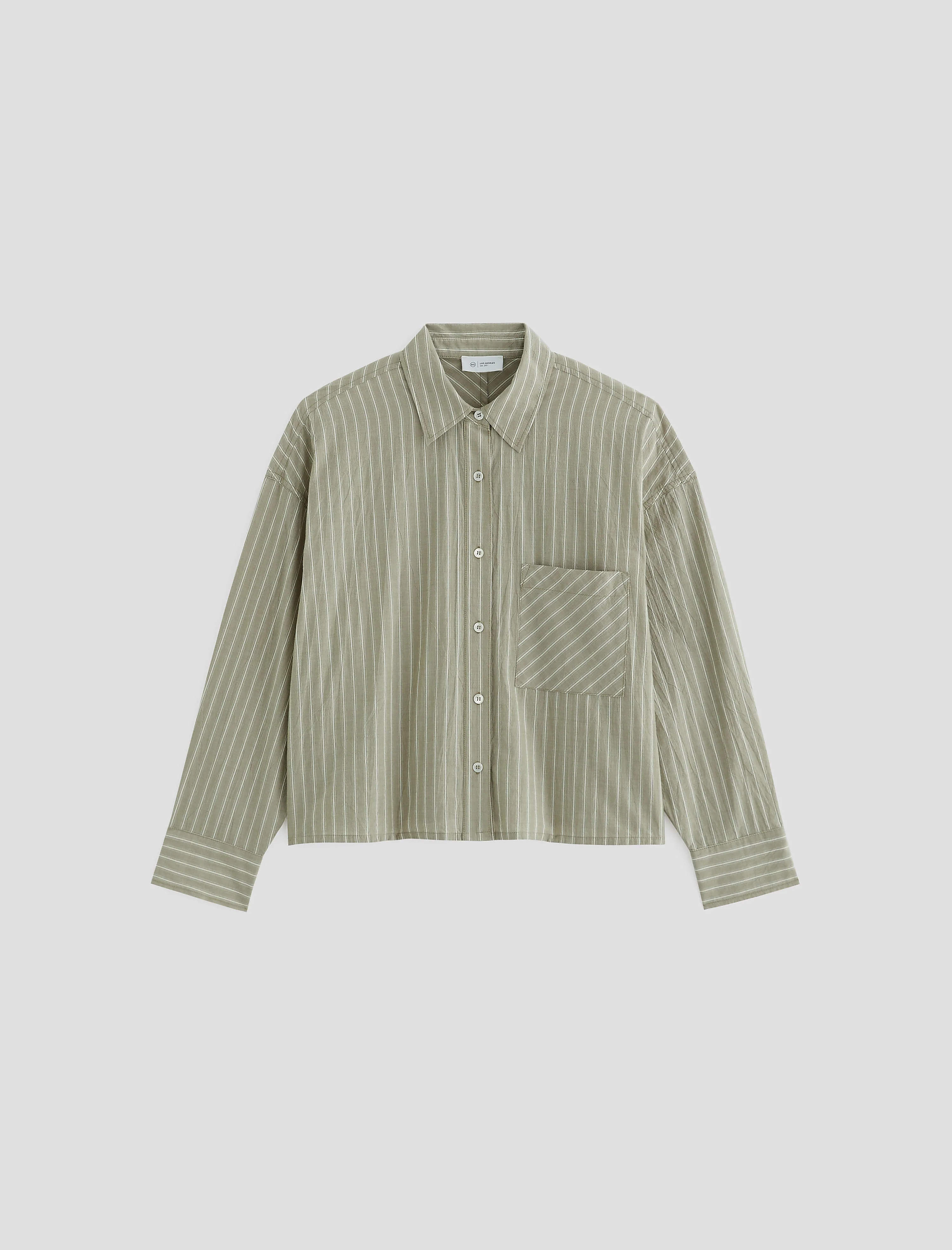 Light-Weight Boxy Crop The Kellan is a relaxed women’s cropped shirt designed for effortless style and everyday versatility. Made from crisp poplin fabric, it offers a lightweight, breathable feel with a polished finish that holds its shape. The long sleeves add balance to the cropped length. DETAILS & FIT Model is wearing size S. - Body Length: 23" - Chest Width: 25" - Sleeve Length: 20" FABRIC & CARE Crinkle Cotton Poplin, 100% Cotton