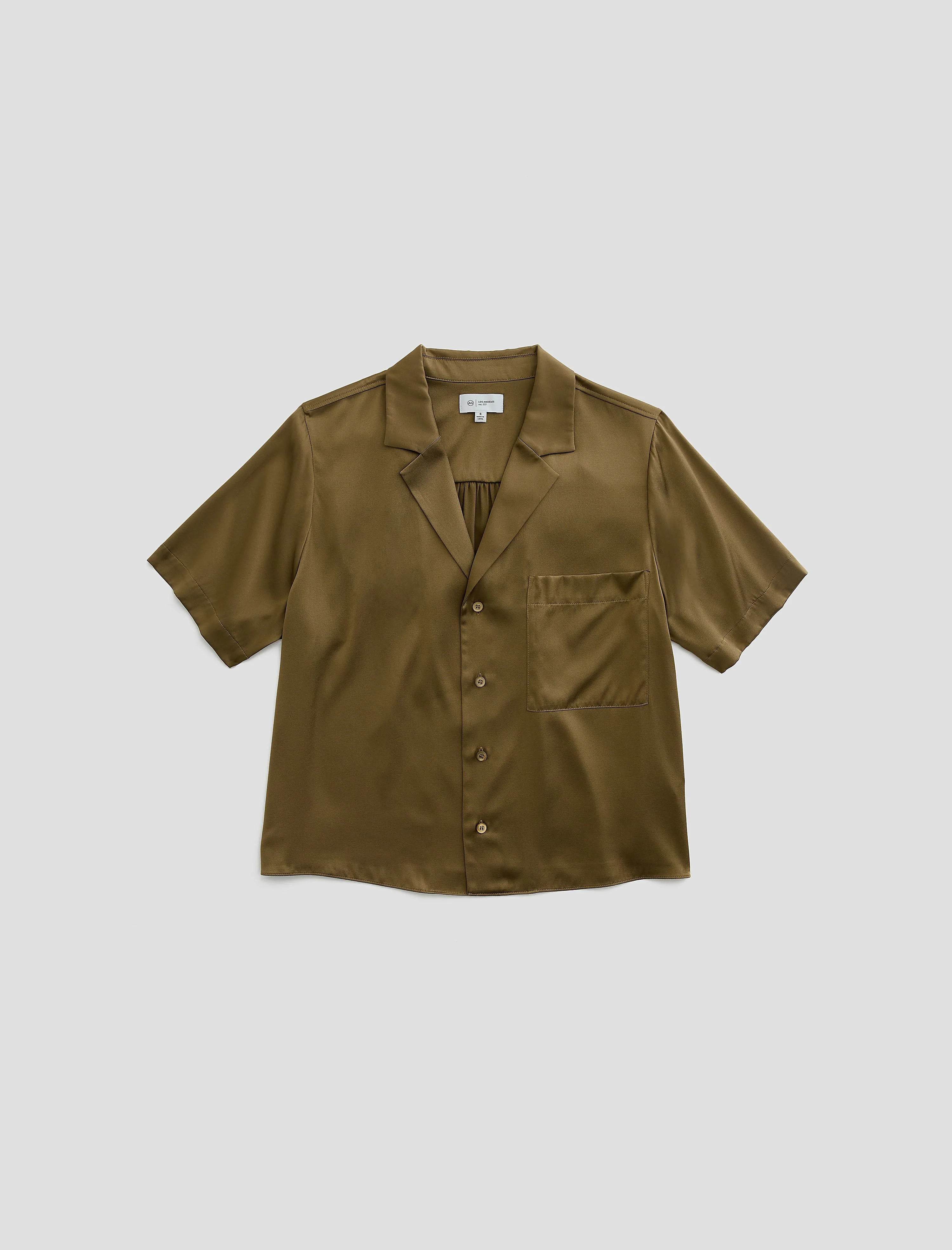 Stretch Silk Twill The Kieran Shirt is a short-sleeve camp shirt crafted from luxe silk twill. Offered in a Mossy Taupe, it delivers a smooth, elevated feel with a relaxed silhouette. DETAILS & FIT Model is wearing size S. - Body Length: 23" - Chest Width: 44" - Sleeve Length: 9 1/2" FABRIC & CARE Luxe Silk Twill, 98% Silk, 2% Spandex/Elastane