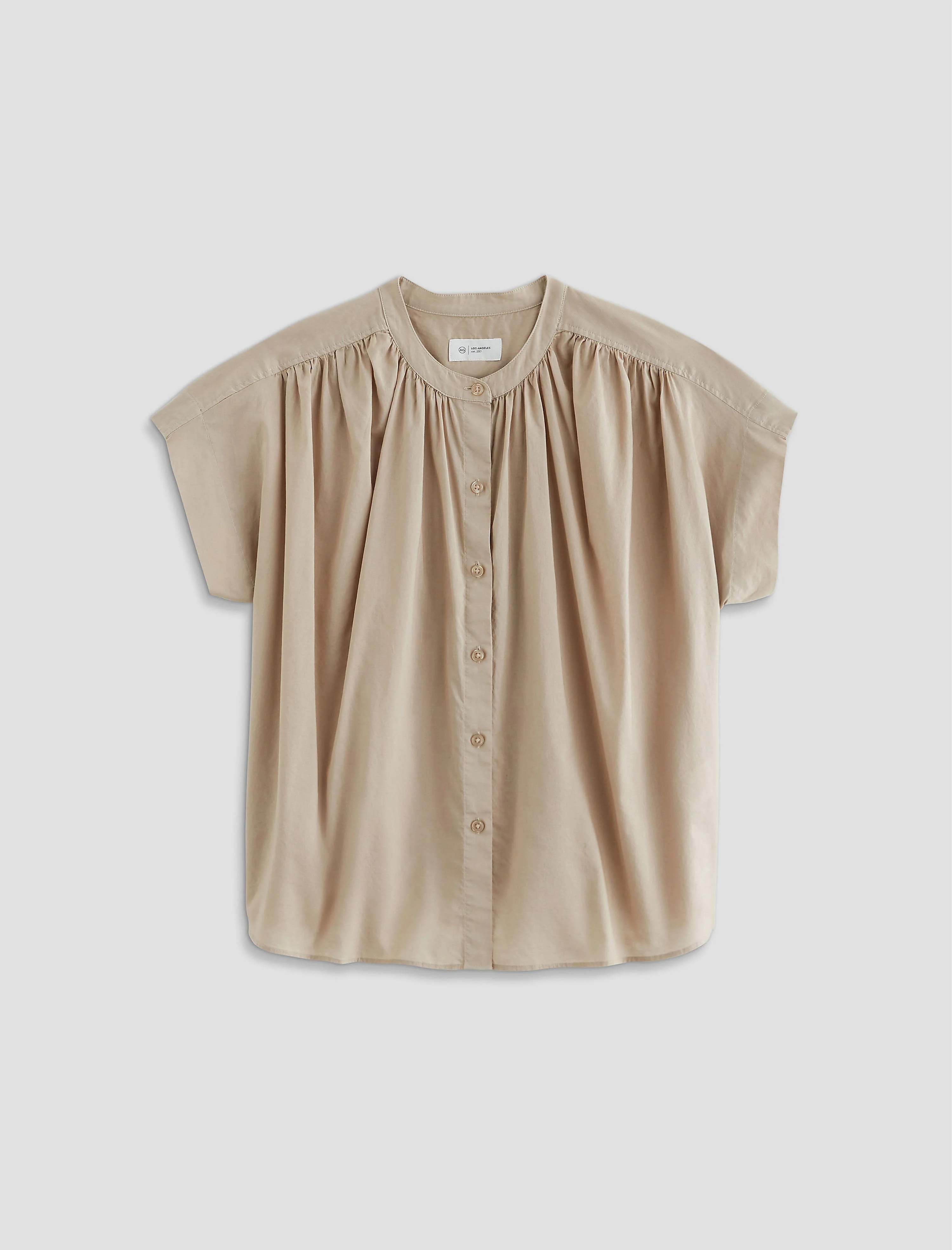 Gathered Cotton Voile The Lotta Blouse is a short-sleeve shirred style crafted from 10 oz. Easy Cotton Voile. This lightweight button-up features a relaxed flow and subtle ruching at the shoulders for a soft, feminine touch. DETAILS & FIT Model is wearing size S. - Body Length: 24 5/8" - Chest Width: 30" FABRIC & CARE Easy Cotton Voile, 10 Oz. 98% Cotton, 2% Spandex