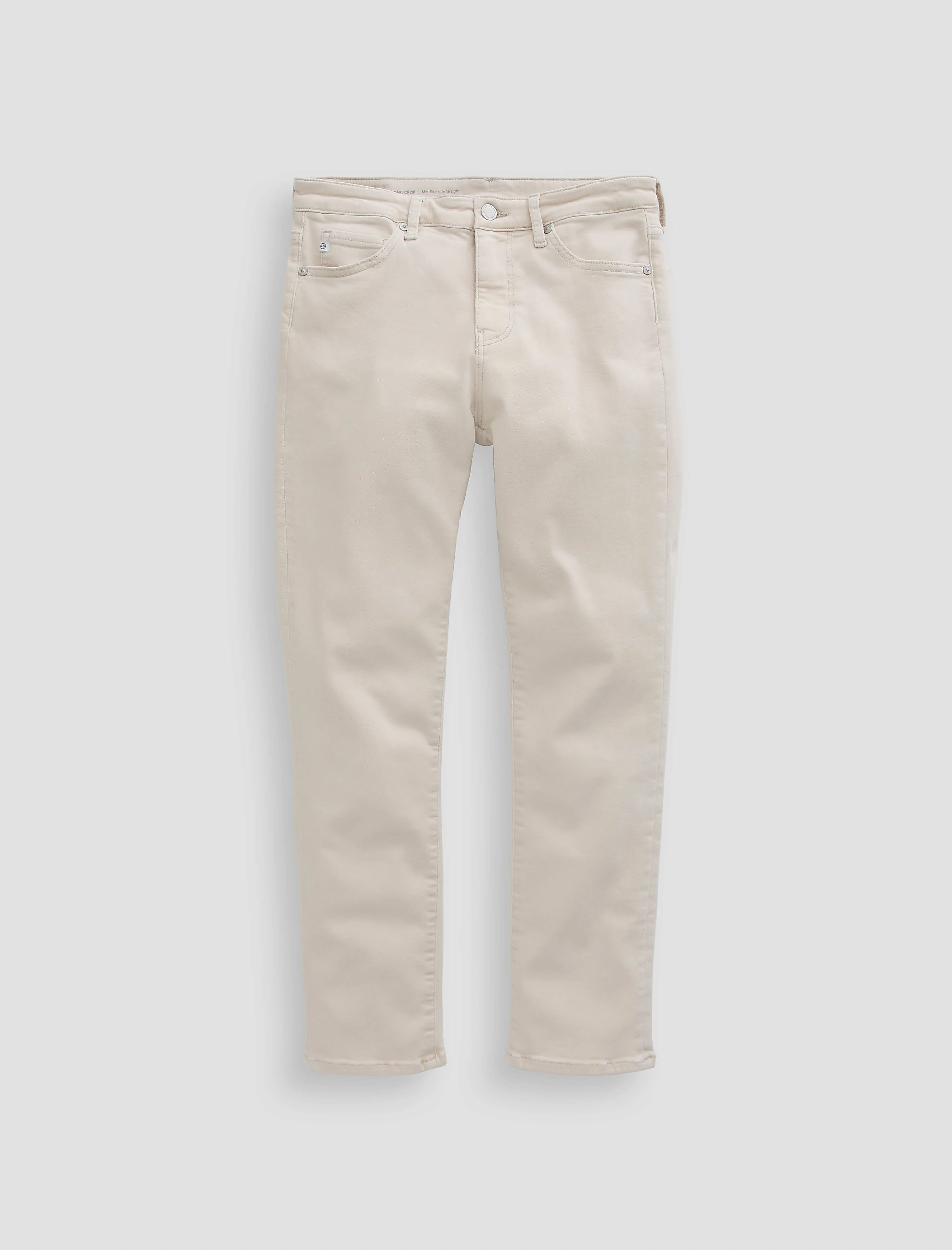 Mid-Rise Slim Straight Mari Crop is our slim straight jean crafted in from AG Cloud Soft Denim™, a special left-hand twill construction that allows the yarns to relax and untwist for a luxe, supple feel. With a clean mid-rise and cropped leg, this jean offers comfort with a streamlined look. Designed in our off-white color, Pumice, and complemented by tonal detailing. DETAILS & FIT Katy is 5'9 wearing size 26. Linh is 5'3 wearing size 24. The measurements below are based on a size 26. - Front Rise: 9 3/4" - Knee Opening: 14" - Bottom Opening: 13" - Inseam: 27" FABRIC & CARE Cloud Soft Stretch Denim, 10.25 oz. 93% Cotton, 5% Polyester, 2% Elastane