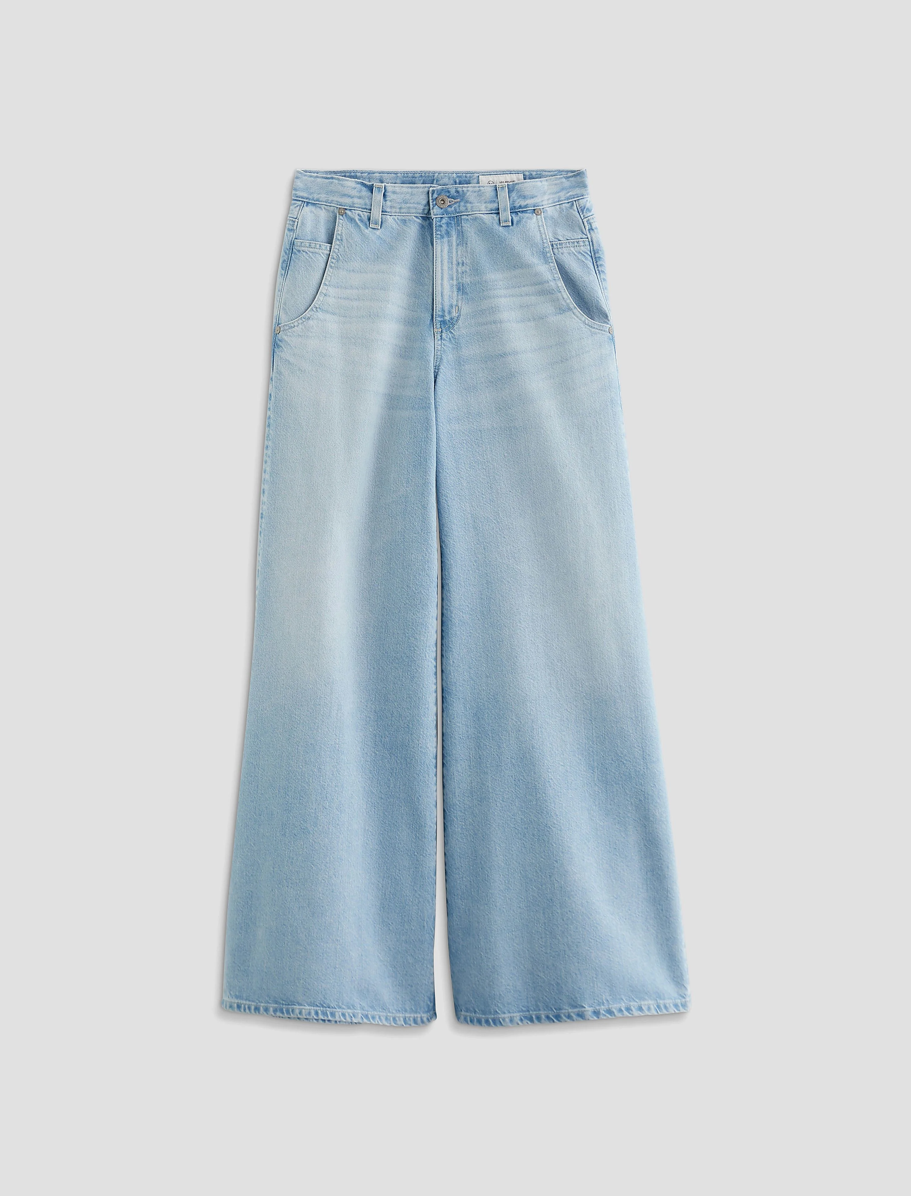 Mid-Rise Super Wide Leg The Posey is a mid-rise super wide-leg jean with a 32” inseam, crafted from 12 oz. Drapey Rigid Denim in a light wash. It’s designed with a comfort stretch feel for ease in every step. This is a playful take on a 90's skater jean. DETAILS & FIT Model is wearing size 26. - Front Rise: 10 3/4" - Knee Opening: 26" - Bottom Opening: 30" - Inseam: 32" FABRIC & CARE Drapey Rigid, Denim, 12 Oz. 82% Cotton, 18% Lyocell