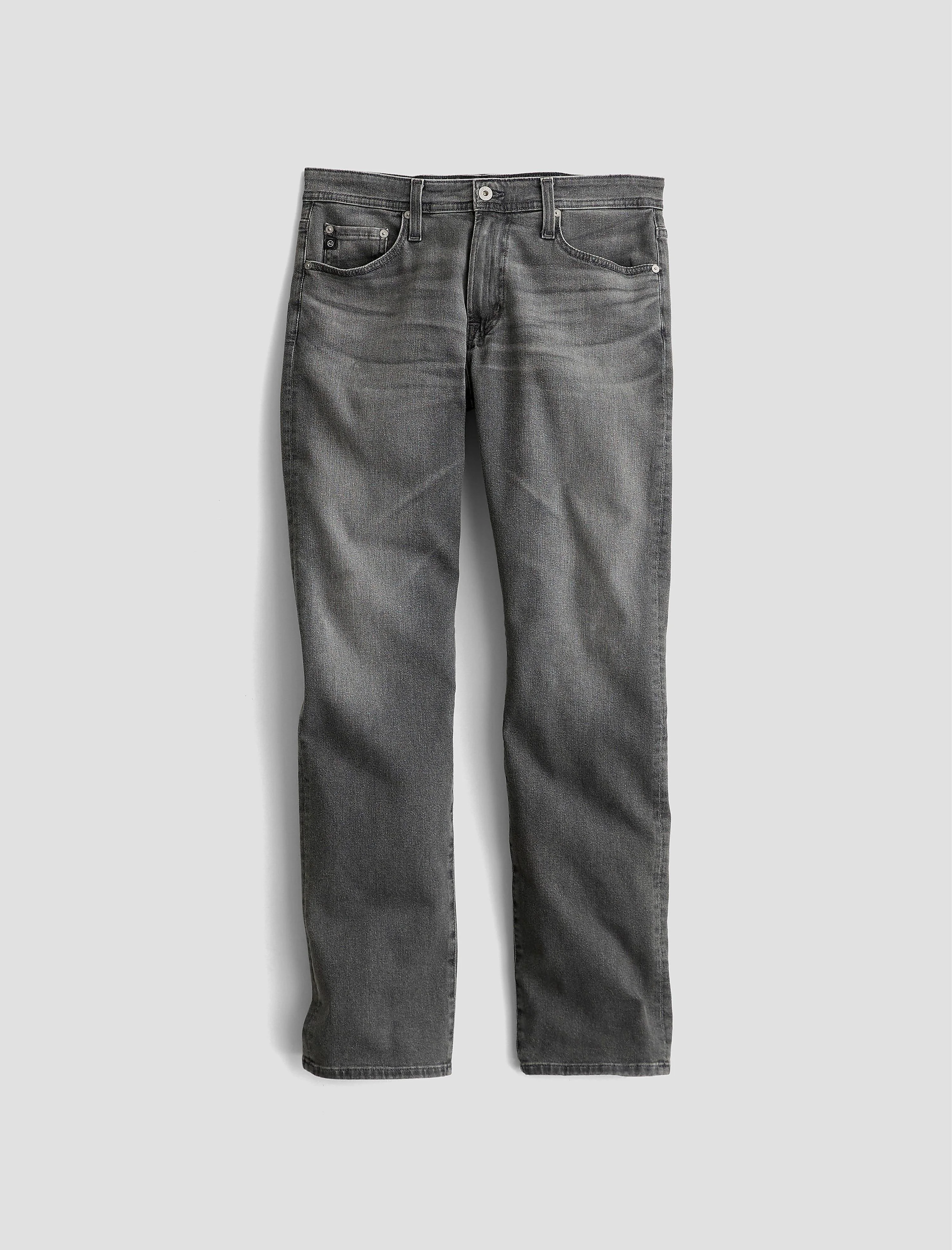 Classic Straight A true AG favorite, our Protege classic straight has an easy fit through the thighs and a clean finish at the leg openings. These ultra-comfortable men's jeans come in 9.1 oz. Hypersoft Black Denim, an exclusive AG Cloud Soft Denim™ with a velvety texture and dual-elastic performance stretch. Washed to a faded grey shade, this pair will soften nicely over time. DETAILS & FIT Model is wearing size 32. - Front Rise: 10" - Knee Opening: 17 1/2" - Bottom Opening: 16 1/2" - Inseam: 34" FABRIC & CARE AG Cloud Soft Denim™, Hypersoft Black Denim, 9.1 Oz. 93% Cotton, 6% Polyester, 1% Elastane